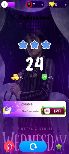 It's time to listen to the Wednesday Addams Piano tiles mobile game having fun with music.